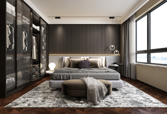 頂樓主臥改造外拓,改造落地窗,空間更開闊,功能增加衣帽間,整體色彩,熱情而又沉穩(wěn)。