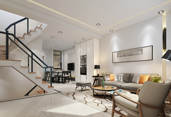 現(xiàn)代風(fēng)格講究材質(zhì)的大塊面質(zhì)感,一樓客廳墻面一木飾面柜子,硬包,石材,為主。餐廳頂上挑高空間給二樓與一樓一個(gè)聯(lián)動(dòng)關(guān)系,西廚解放了廚房電器堆壓,吧臺(tái)設(shè)計(jì)擁有了簡(jiǎn)餐愜意的休閑空間。