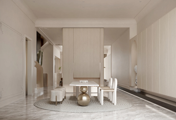 本案整體以沉穩(wěn)的淺灰色為基調(diào),象征著平日的踏實生活,而家具和飾品則以鮮明的對比色來比喻希望的活力,淡然樂觀的處世??蛷d墻面以干凈明亮的白色為主,采用大面積的淺咖色護墻板,營造舒適放松的家庭空間。衛(wèi)生間以清新精致的路線為主,大理石的裝扮,簡約帶點輕奢。局部色彩的運用呼應了客廳家具的顏色搭配,而避免了設計元素的脫節(jié)。樓梯是銜接上下空間的橋梁,也是空間精美的造型藝術(shù)。無論是住宅空間還是商業(yè)空間,樓梯不再只是同行要道,還是空間中的一道風景。