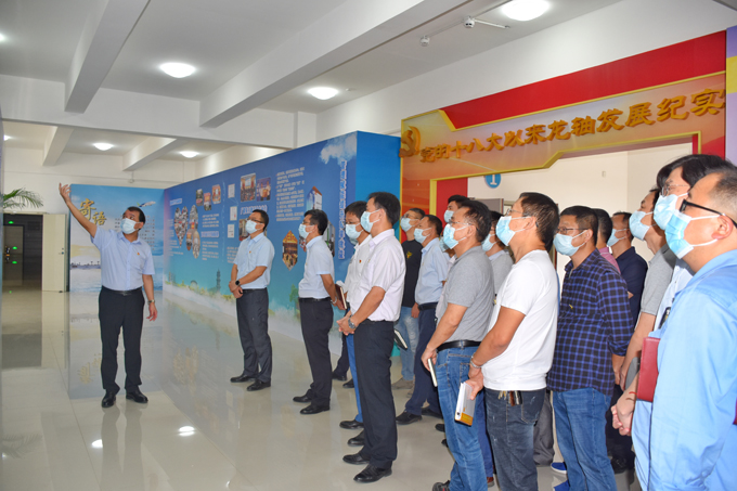 2022年10月17日,龍軸集團黨委書記、董事長陳晉輝帶領(lǐng)公司高管,在漳各黨總支、黨支部負責人觀看“龍軸這十年——初心如磐存高遠,循脈向前展宏圖”成就展。