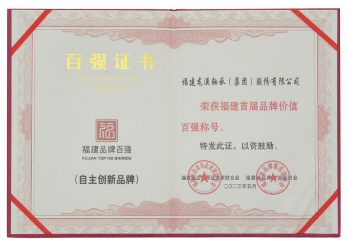 5月7日,福建首屆品牌價值百強(qiáng)榜單發(fā)布會在福建省寧德市舉行,發(fā)布了100個品牌企業(yè)和20個區(qū)域品牌作為福建首屆品牌價值百強(qiáng)榜單,龍軸集團(tuán)的品牌強(qiáng)度位列福建品牌價值百強(qiáng)第4,品牌價值在自主創(chuàng)新品牌中位居第5。