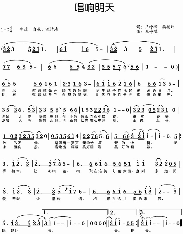 整首歌詞柔美抒情與激情豪邁兼容并蓄,用詞樸實(shí)卻又寓意深遠(yuǎn),頗有龍軸人腳踏實(shí)地、艱苦奮斗、志存高遠(yuǎn)的風(fēng)范。歌詞緊緊抓住“唱響明天”這一立意高遠(yuǎn)的主題,以龍軸集團(tuán)的發(fā)展歷程和前景為主線,著重體現(xiàn)了龍軸集團(tuán)、龍軸人在“求實(shí)奮進(jìn)”企業(yè)精神和“至誠(chéng)至善”核心價(jià)值觀的指導(dǎo)下,經(jīng)過(guò)幾十年的拼搏、奮斗,必將會(huì)有更美好的明天,借以抒發(fā)出龍軸人建設(shè)世界知名、客戶首選的現(xiàn)代企業(yè)集團(tuán)的豪情壯志,讓大家自豪地唱出:相聚在這個(gè)共同的家園,龍軸,必將唱響明天!