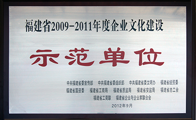 2012年9月28日,福建省委宣傳部召開全省企業文化建設工作經驗交流電視電話會議,公司被授予“2009-2011年度福建省企業文化建設示范單位”,福建省委常委、宣傳部長袁榮祥出席了福州主會場會議并發表講話,福建省政協副主席李川主持會議。