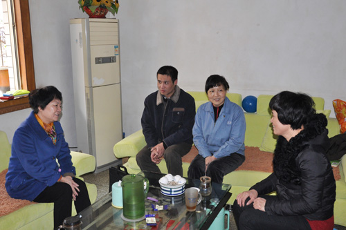 2015年2月10日,市總工會副主席黃躍秋一行在公司工會常務(wù)副主席洪麗玲、女工委副主任何碧珠的陪同下到公司員工劉燕琴家中走訪慰問。黃躍秋副主席與劉燕琴親切交談,詳細(xì)了解她的身體康復(fù)情況及家庭生活狀況并帶去新春祝福,洪麗玲也代表公司工會送上節(jié)日祝福,劉燕秋對市總工會及公司的關(guān)心表示感謝,并表示身體康復(fù)情況不錯,希望能早日回到工作崗位。