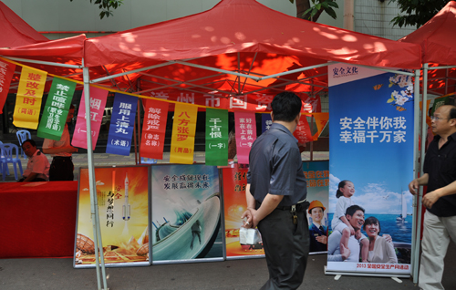 按照《漳州市人民政府安全生產(chǎn)委員會辦公室關(guān)于做好安全生產(chǎn)宣傳咨詢?nèi)栈顒?/FONT>的通知》精神,6月9日早上,我公司代表國資系統(tǒng)參加漳州市2013年安全生產(chǎn)宣傳咨詢?nèi)栈顒樱谑袇^(qū)延安北路繁華路段設(shè)置咨詢點(diǎn),舉行安全生產(chǎn)知識咨詢活動。主要活動內(nèi)容有:分發(fā)安全生產(chǎn)宣傳資料;安全生產(chǎn)知識咨詢;謎語競猜;安全月主題展等。