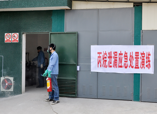 2013年3月14日下午,公司安全管理部按危險化學品危險源監控管理要求,在藍田熱處理車間丙烷、液氨供氣點組織開展 “丙烷泄漏應急處置”、“液氨泄漏應急處置”兩場演練。
