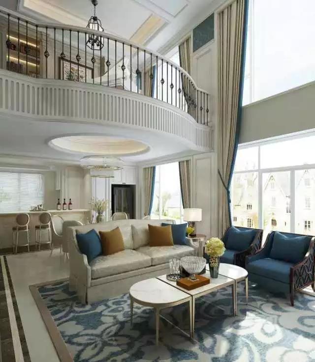 布藝的優(yōu)雅,皮質(zhì)的粗獷,水晶的浪漫,青花瓷的東方韻味,融合在高挑空的客廳里,空氣中都流動(dòng)著自由的味道。不同深淺的藍(lán)構(gòu)成豐富的視覺(jué)層次,使諾大的空間保持完美的統(tǒng)一。