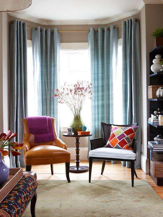 都知道現(xiàn)在窗簾都是兩層,紗簾和布簾,那么對于這種窗戶,除了按照以上多邊形窗戶和圓弧形窗戶的幾種方法,還有一種就是沿著飄窗做紗簾,而將布簾放在飄窗里部,這樣會很方便,采光也會比較好▼