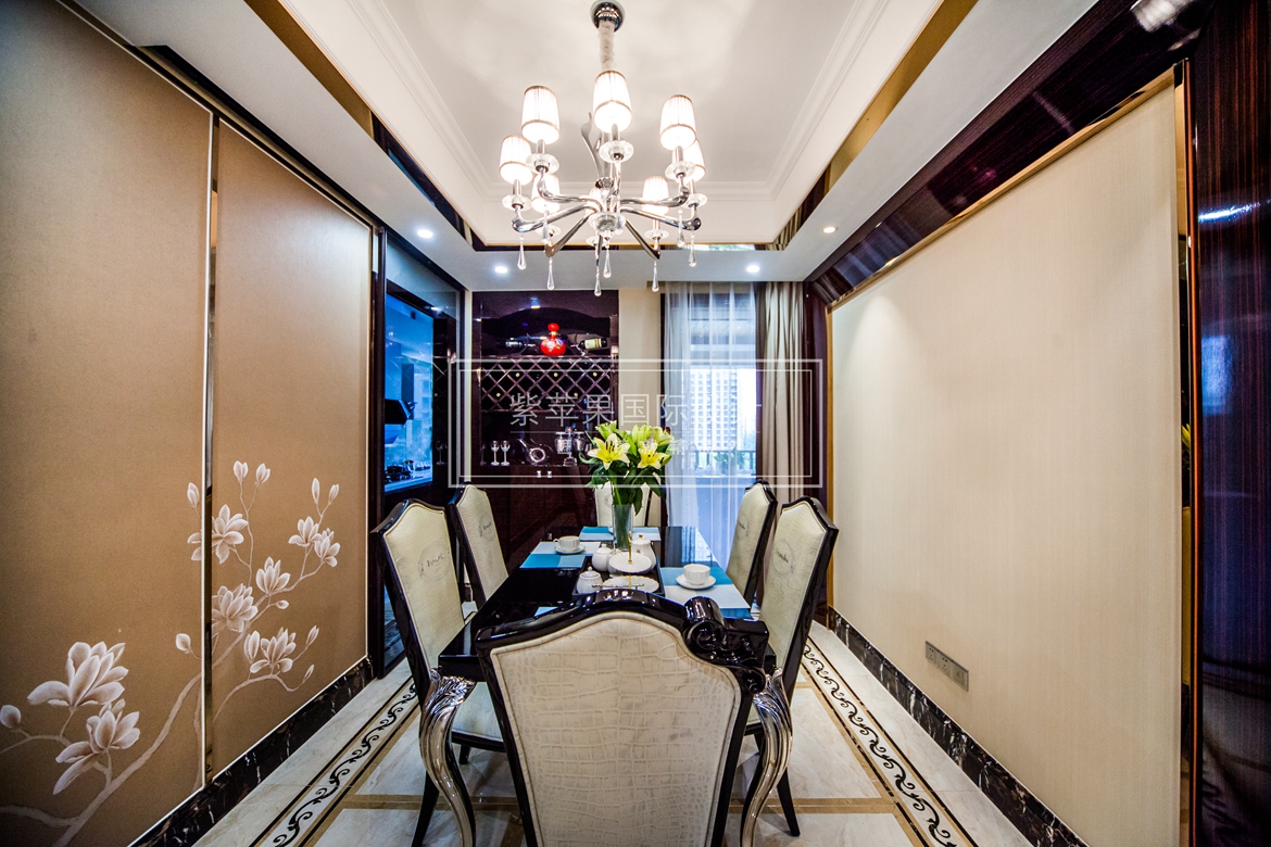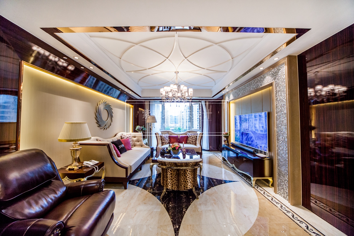 本案將懷古的浪漫情懷與現代人對生活的需求相結合,兼容華貴典雅與時尚現代,反映出后工業(yè)時代個性化的美學觀點和文化品位。形散神聚是現代歐式風格的主要特點。在注重裝飾效果的同時,用現代的手法和材質還原古典氣質,新古典具備了古典與現代的雙重審美效果,完美的結合也讓人們在享受物質文明的同時得到了精神上的慰藉。