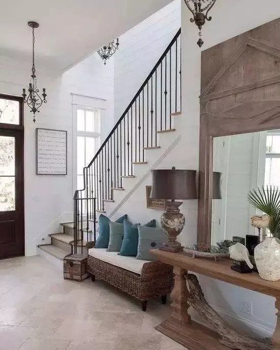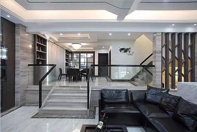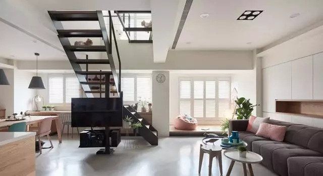 比如木質(zhì)的樓梯噪音大,鐵質(zhì)的扶手冰涼, 拋棄兩者的缺點(diǎn),把優(yōu)點(diǎn)結(jié)合起來(lái),就是很好的組合。其他還有木質(zhì)跟玻璃、大理石跟玻璃等。