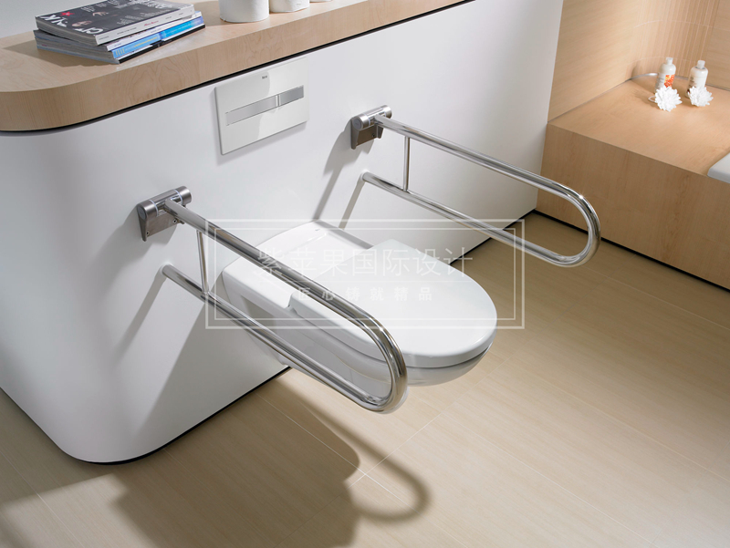 在馬桶左右手邊都可以設(shè)置L型扶手,這樣老人在起來時好有個借力的地方。