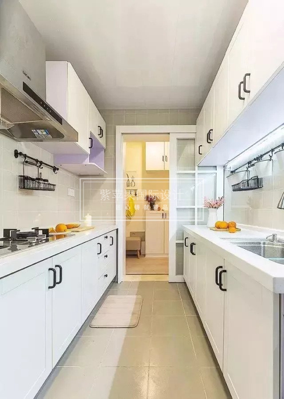 對于廚房這樣零碎東西集中的區(qū)域來說,一個好櫥柜真的非常重要。如果覺得櫥柜顏色有些單調,這個時候可以用局部亮點來點綴:餐具、臺面、電器、花卉都是搭配利器。