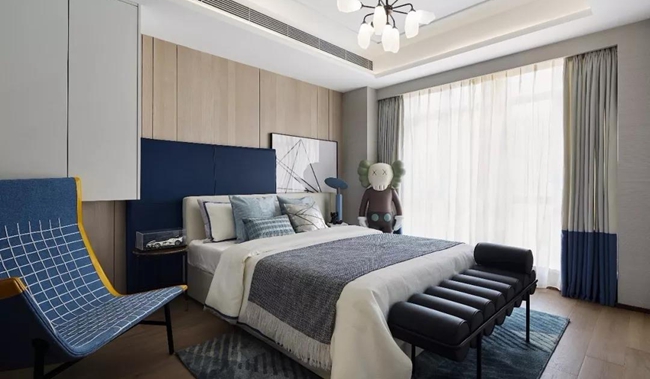 二層主臥空間營造了品質(zhì)寧靜的生活狀態(tài)。沉穩(wěn)的色調(diào),設(shè)計(jì)在細(xì)節(jié)塑造中呈現(xiàn)生活的品質(zhì)感,帶來歲月靜好的自然氣息。