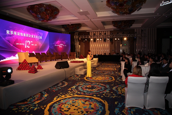 2015年4月16日,紫蘋果集團全國各地的優(yōu)秀紫人帶著激動與喜悅的心情奔赴上海,齊聚上海穎奕皇冠假日酒店,參加集團12周年年會。在五星級酒店的舒適體驗與怡人風(fēng)光中,所有人共同迎接來了紫蘋果裝飾集團12周年慶的隆重首發(fā)活動——企業(yè)文化之夜。