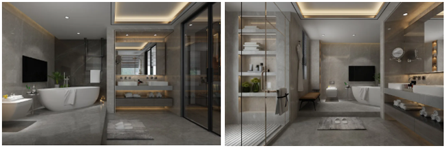 衛(wèi)生間設(shè)置浴缸,用于放松身心,舒適愜意;大空間打破沉悶與壓抑,懸空馬桶讓現(xiàn)代感與科技感并存。