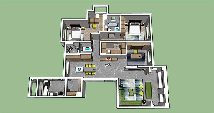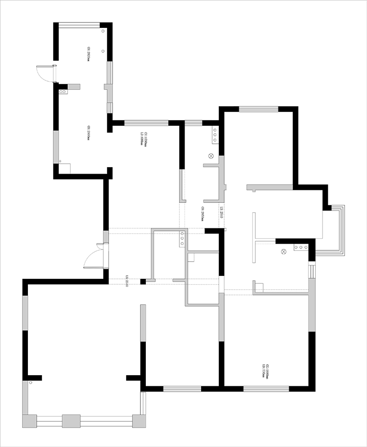 原始結(jié)構(gòu)進(jìn)門有一個衛(wèi)生間,不太合理,設(shè)計師后期全部打開來做,由于承重結(jié)構(gòu)三個房間的位置也比較固定,所以我們把主要的改動思路放在了公共區(qū)域即客餐廳這幾塊空間。