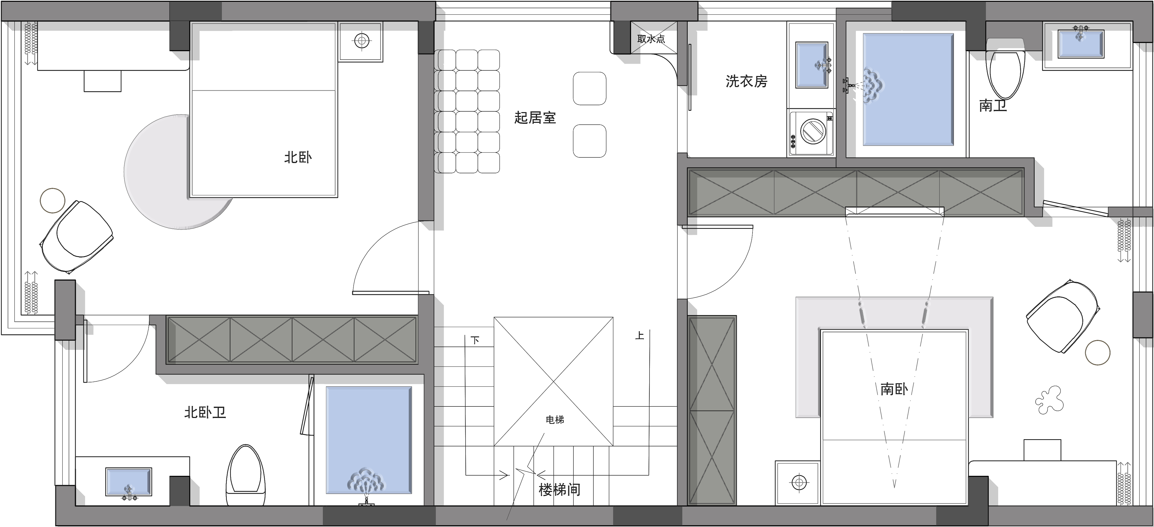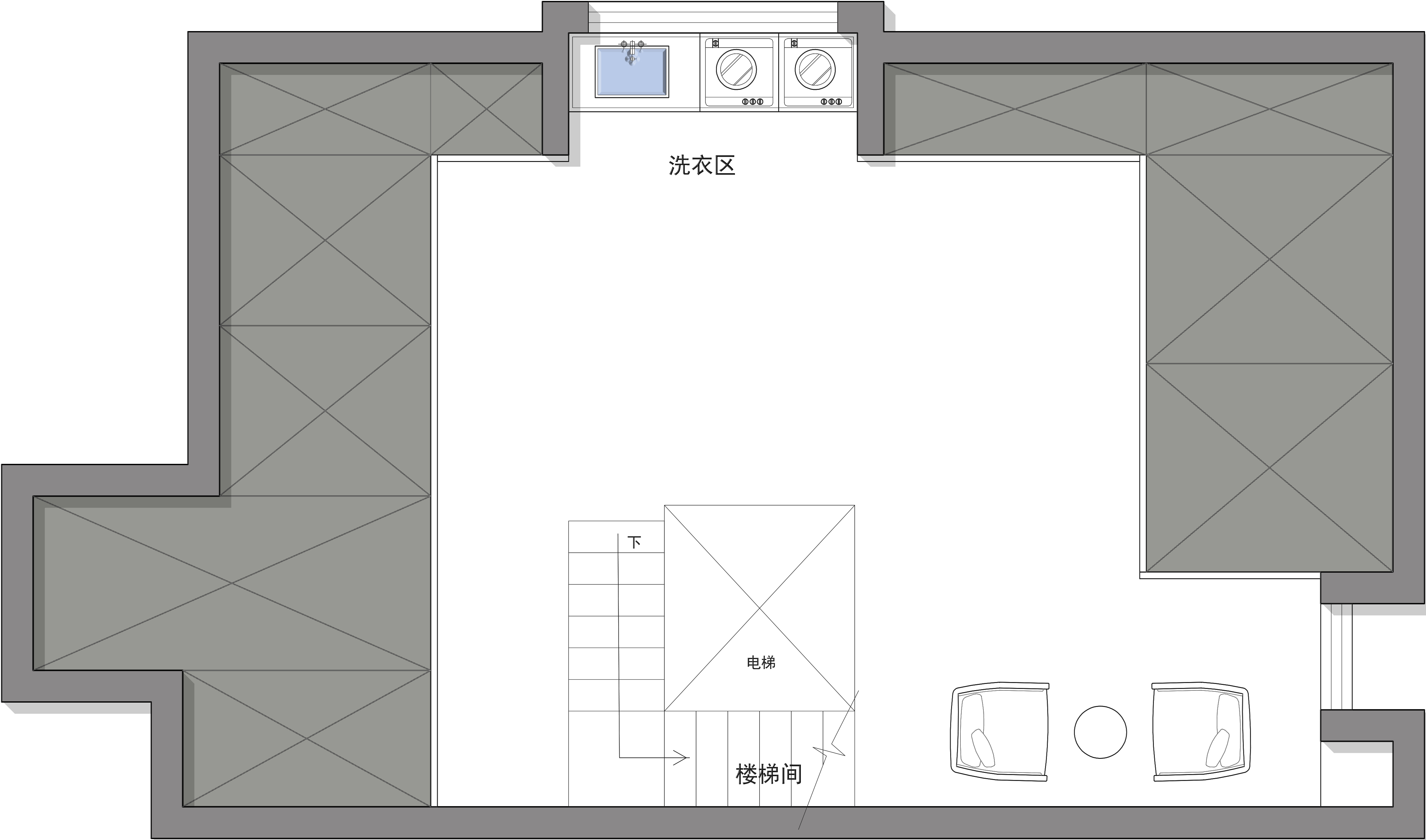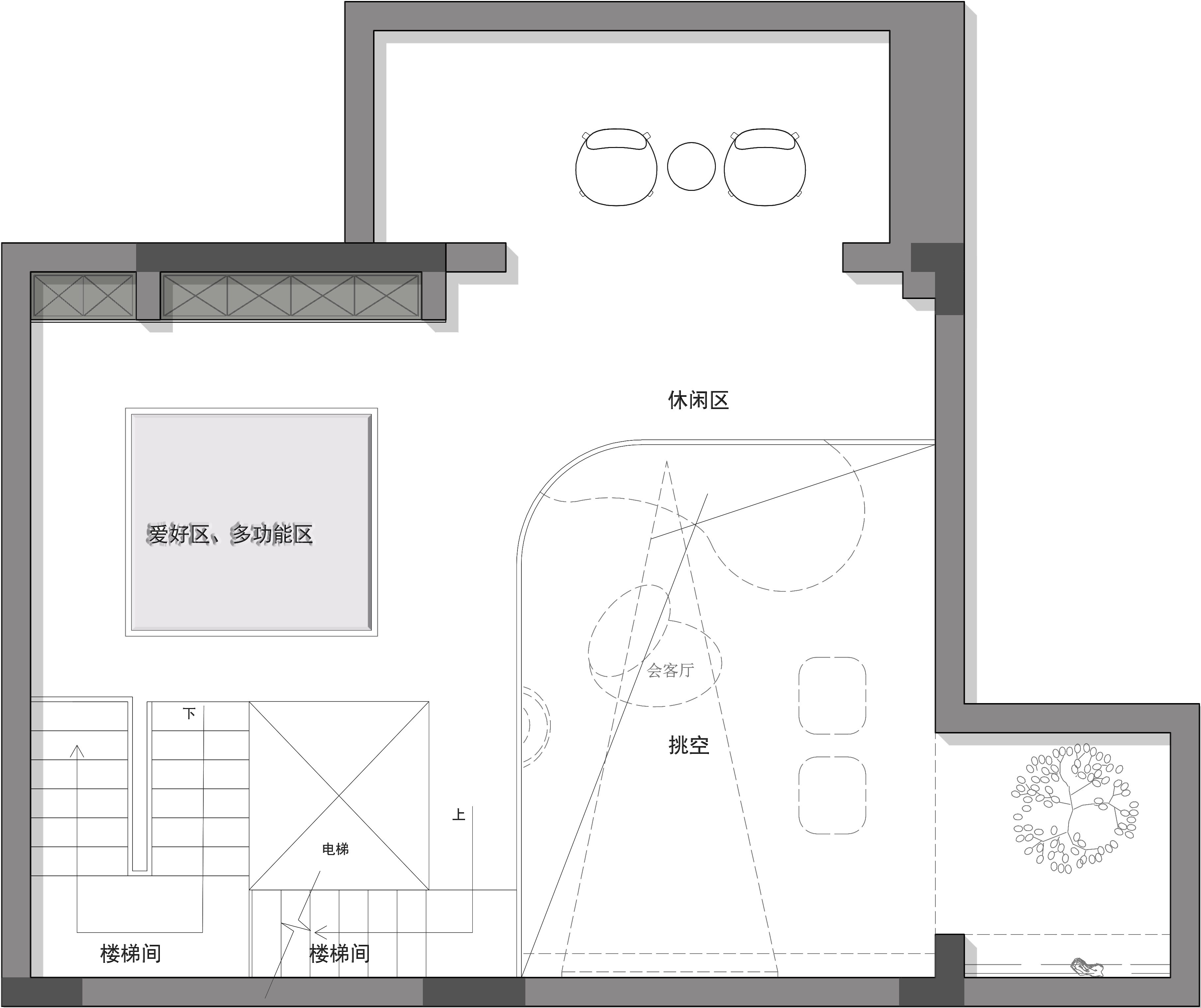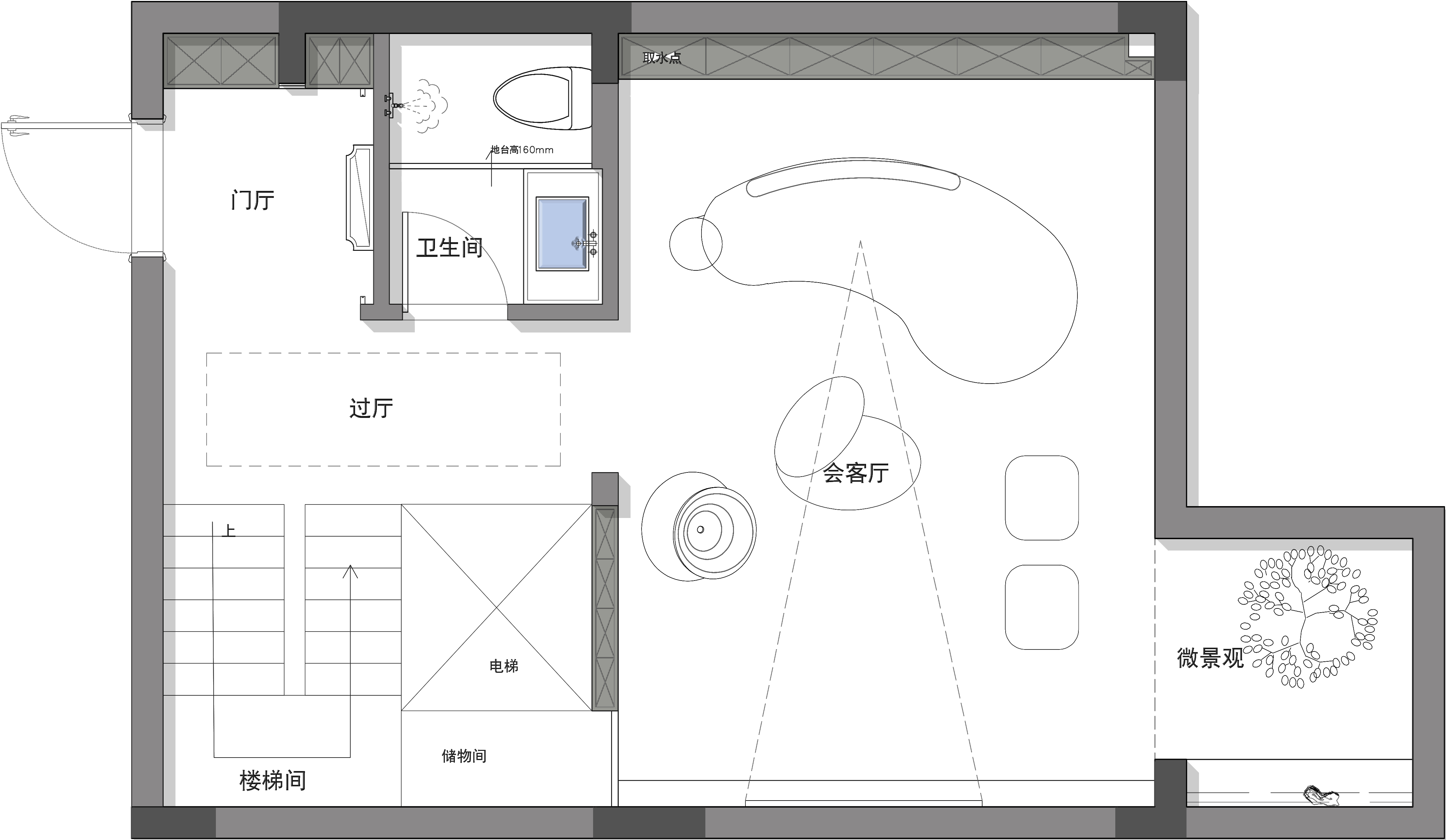 因為家里有老人孩子,我們在原始基礎(chǔ)上改變了樓梯位置,設(shè)置了電梯方便老人小孩上下樓!
