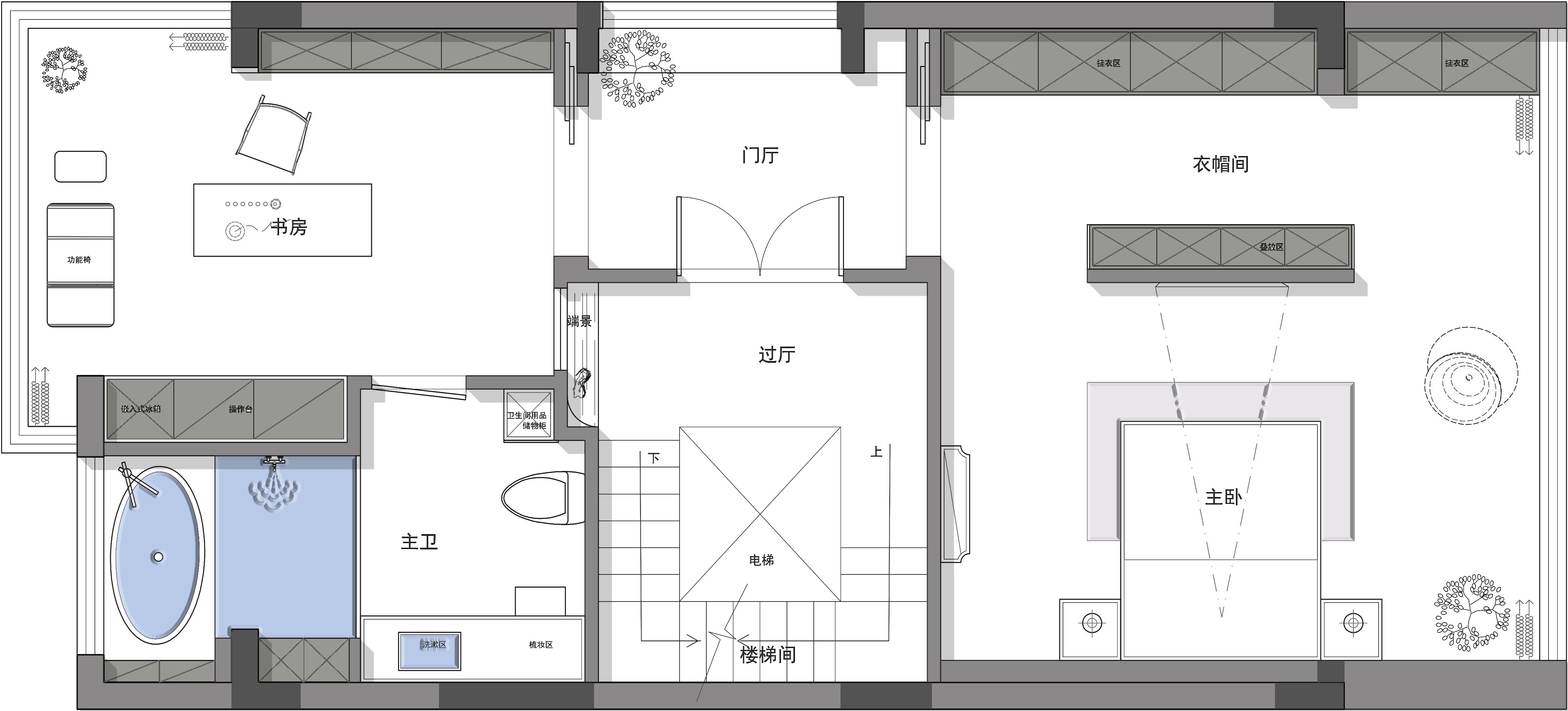 上去二樓是兩個給老人小孩的臥室,里面都有獨衛(wèi),品質(zhì)很高!三樓主要是主人區(qū)域,很有儀式感的入戶玄關(guān),整層都給他們用來休息辦公,品質(zhì)非常高,露臺作為了晾曬區(qū)。