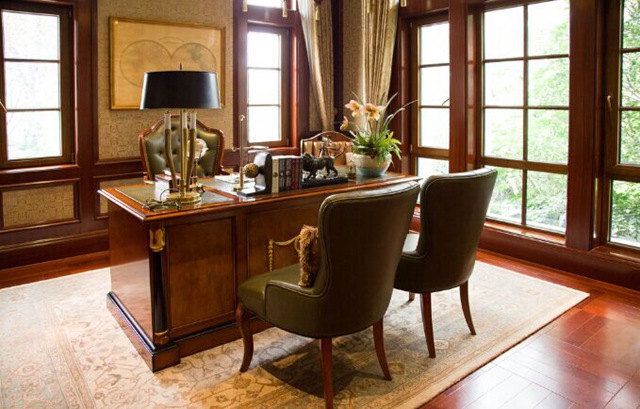 書房主要是用來辦公的,所以書房里的家具不會(huì)太多,但造型都比較大型。在這張別墅裝修設(shè)計(jì)效果圖中的辦公家具同樣是實(shí)木質(zhì)材,這些實(shí)木制材會(huì)有很明顯的一些帶有復(fù)古情懷的雕花、造型也是顯得非常端莊古樸大方。美式田園風(fēng)格的突顯出來的收納柜是采用的多種形式的,也不是擁有無數(shù)小格的開放式柜子,而是安上透明玻璃有作展示用的櫥柜,在書柜中放置一些收藏品可以為整個(gè)空間增添歷史感。