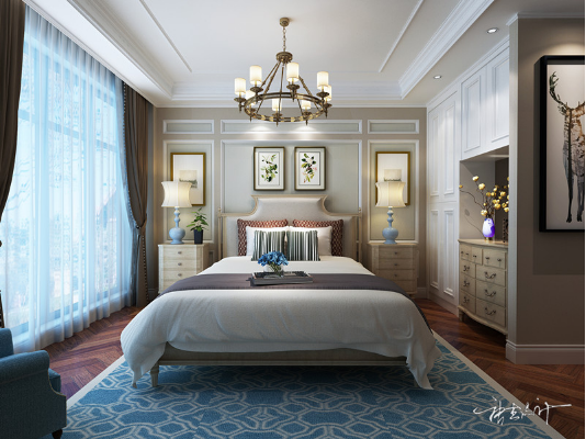 2、燈具選擇安裝:臥室的照明中,天花燈應(yīng)安裝在光線不刺眼的位置;臥室不宜采用向下照射的燈具,宜用照頂?shù)臒艄?床頭燈可使室內(nèi)更具浪漫溫馨的氣息;臥室的光源色調(diào)應(yīng)盡量柔和,設(shè)計(jì)要考慮寧靜穩(wěn)重或是浪漫舒適的強(qiáng)調(diào)。