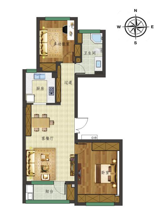 戶型效果圖:這個(gè)戶型大家可以看出來并不是很多,確實(shí)它只有2300px,但是相信大家可以從戶型圖中看出設(shè)計(jì)師還是將很多東西設(shè)計(jì)的很微妙。那么我們再來看看設(shè)計(jì)效果圖吧,從里面你可以發(fā)現(xiàn)更多很棒的設(shè)計(jì)感和微妙元素在里面。