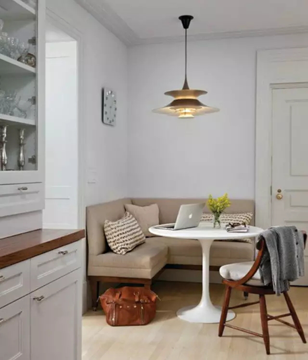 這樣的角落用餐區(qū),應(yīng)該有不少人會喜歡吧?家里面積小的朋友可以直接用來做吃飯的地方,有充??臻g的朋友這樣來裝飾家里的尷尬角落,也是美觀而實用,在這里與閨蜜們喝喝下午茶,一個人窩在這里玩玩電腦看下雜志也很適合。