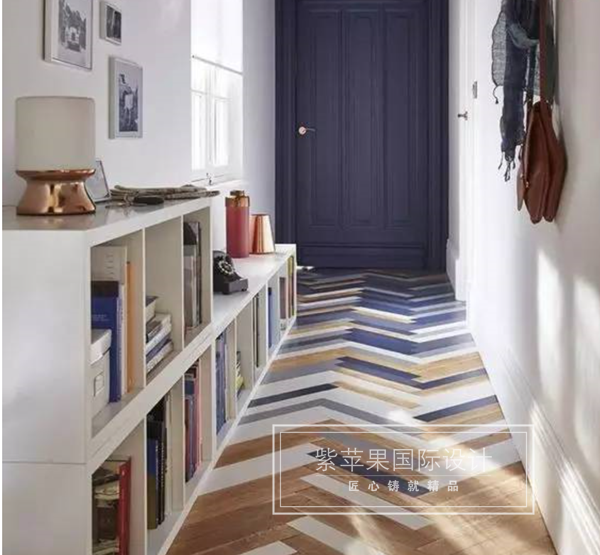 在經(jīng)常需要清潔的地方,如玄關(guān)位置,拼接瓷磚地板美觀又方便家務(wù)。
