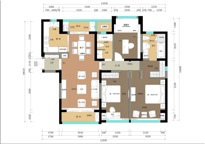 3、過道盡頭設(shè)置為主臥獨立衣帽間。解決直沖的現(xiàn)象。