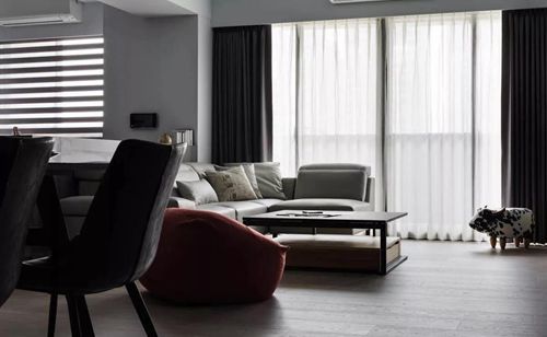 窗簾的粉紅既不花哨又不會單調(diào)無趣,且與灰色沙發(fā)、木紋茶幾融成一個十分和諧的視覺整體。