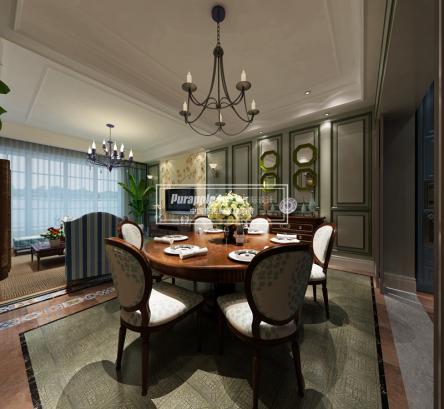 本案的業(yè)主很喜歡復(fù)古實木家具的質(zhì)感,兼顧家的實用性,最終選取了簡約美式的設(shè)計風格。在本案中隨處可見的復(fù)古實木家具與花藝墻紙、石紋地磚將簡美風發(fā)揮的淋漓盡致。設(shè)計師以藝術(shù)家的情懷將業(yè)主帶回到18世紀的西方,送給業(yè)主一場穿越之旅。