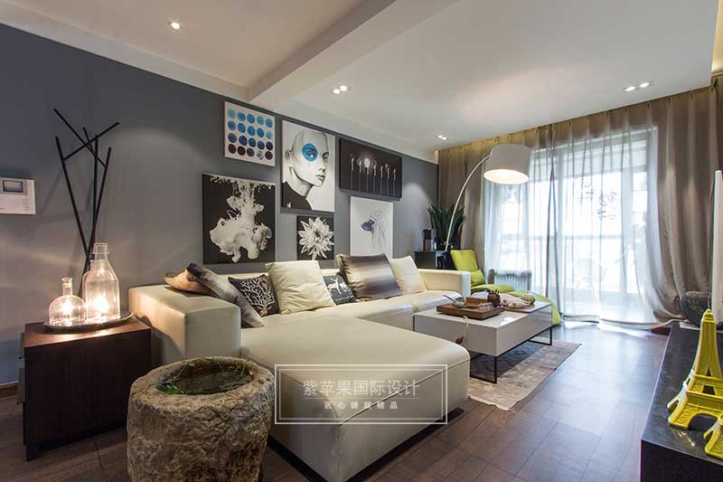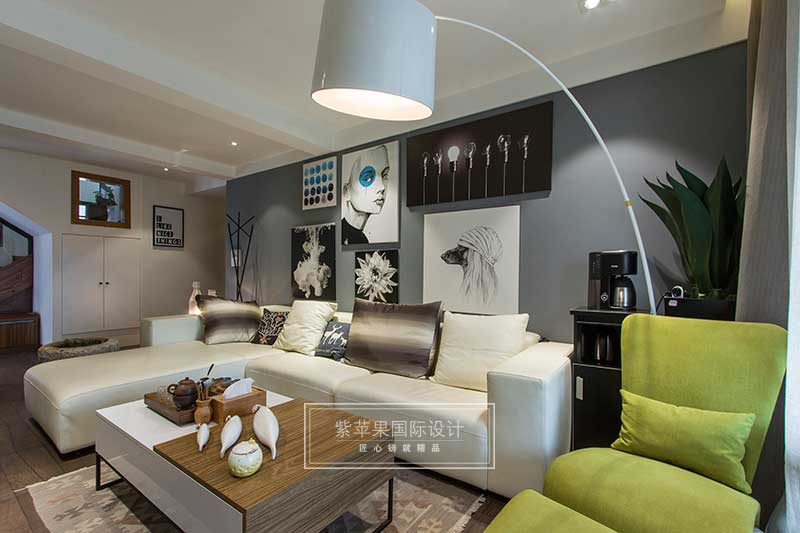 室內(nèi)線條分明,利落,一桿落地釣魚燈的以其柔美的拋物線,優(yōu)雅著空間的線條感。個(gè)性鮮明的裝飾畫, 造型別致的裝點(diǎn)物,淋漓盡致表達(dá)著主人心中的自由與率性。