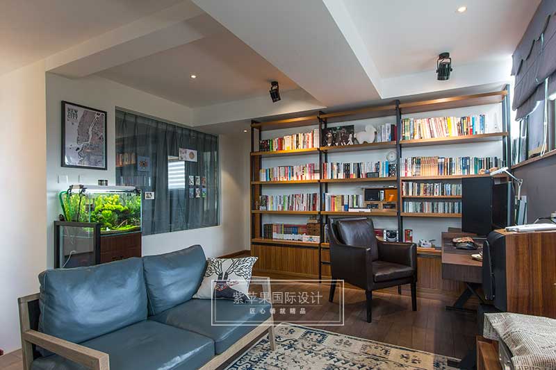 空間設(shè)計(jì)特點(diǎn):全方位開放空間的布局;充分利用自然光線來采光;簡約而又帶有工業(yè)色彩的設(shè)計(jì)元素。基于業(yè)主熱愛閱讀的特點(diǎn),設(shè)計(jì)師用一個(gè)大體積書柜來放置書物,利用簡單的家居布置,希望帶給業(yè)主一個(gè)足夠自由開闊閱讀交流空間。