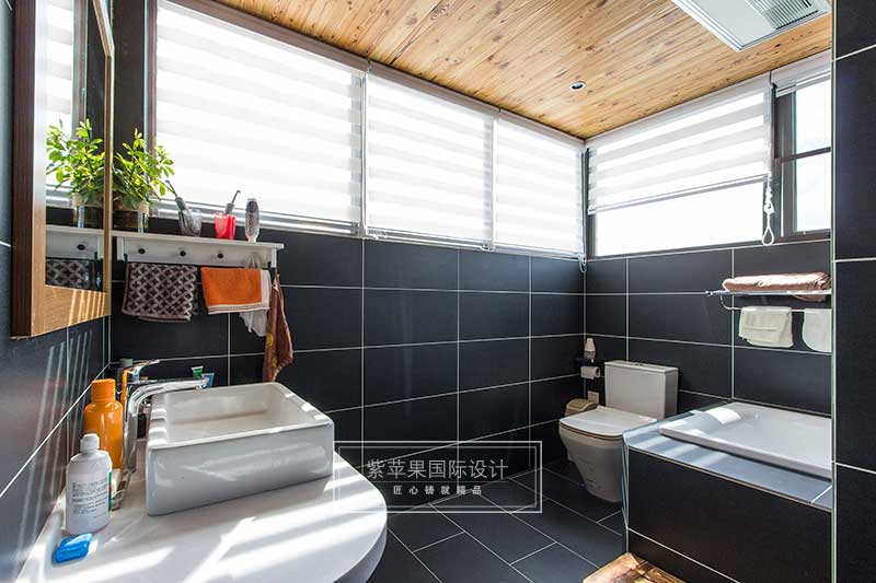 黑灰色簡約的色彩,舒適氣質(zhì)。陽光充足,一切顯得干凈明亮,讓衛(wèi)浴空間充滿品質(zhì)感。