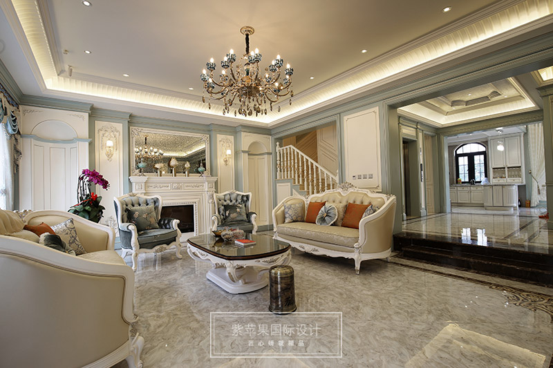 【紫原創(chuàng)-裝修實(shí)景】布局上突出軸線(xiàn)的對(duì)稱(chēng),恢宏的氣勢(shì),注重居室空間的豪華舒適;細(xì)節(jié)處理上運(yùn)用法式廊柱、雕花、線(xiàn)條,制作工藝精細(xì)考究;崇尚沖突之美,均是法式風(fēng)格的特色。