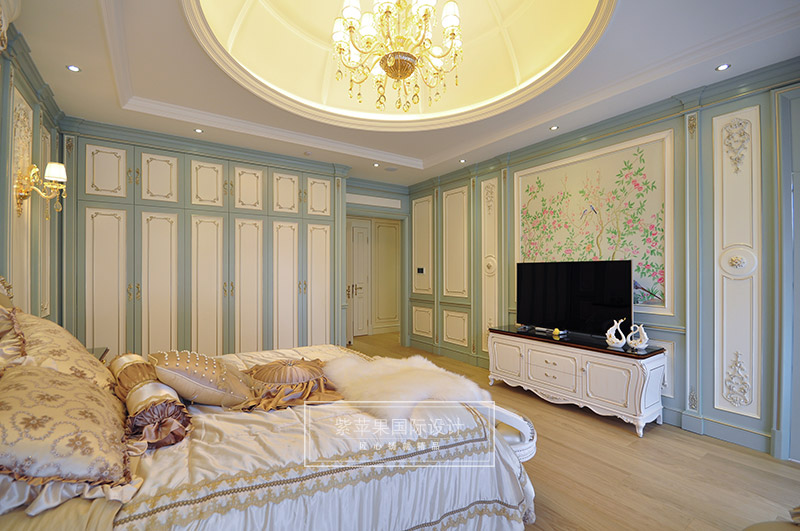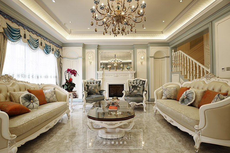 開(kāi)放式的空間結(jié)構(gòu)、隨處可見(jiàn)的花卉和綠色植物、雕刻精細(xì)的家具……所有的一切從整體上營(yíng)造出一種田園之氣。Tiffany藍(lán)的純粹,靈動(dòng),浪漫又優(yōu)雅,讓很多為之癡狂,設(shè)計(jì)師將它融入在空間里,在白色墻面,白色家具的襯托下,顯得空間清澈純凈,如絲般流動(dòng)柔滑,一股浪漫的氣息在空間里肆意流轉(zhuǎn)!