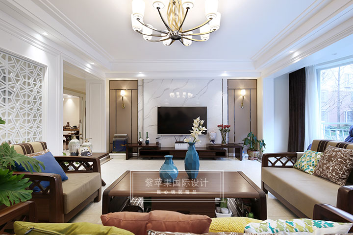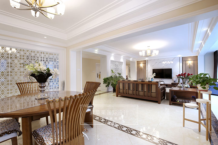 設(shè)計師將客廳、餐廳空間打通,讓室內(nèi)空間開敞、內(nèi)外通透,墻體采用鏤空設(shè)計,讓自然光結(jié)合燈光,空間更加透亮,明亮的落地窗讓房子沐浴在陽光中,當(dāng)正午的陽光透過窗戶灑在室內(nèi),照暖沙發(fā)、茶幾、地板……此時,一家人的休閑時光更加溫馨舒適!