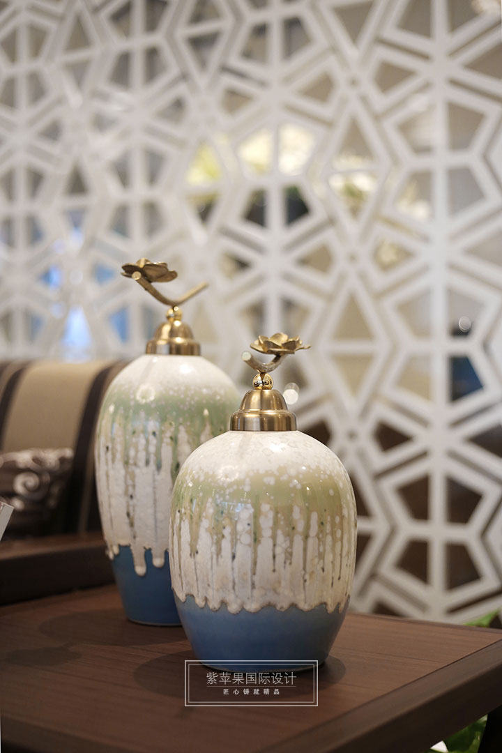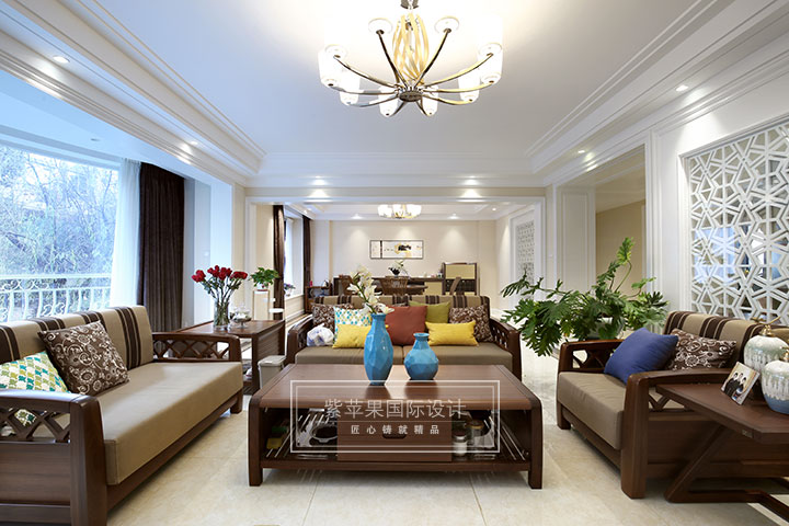 溫暖棕色的書桌,書柜,奠定空間簡約,自然的基調(diào),客廳,餐廳,書房均采用了款式一致的吊燈,優(yōu)美的造型,柔和舒適的光線,讓空間更具優(yōu)雅,美感。