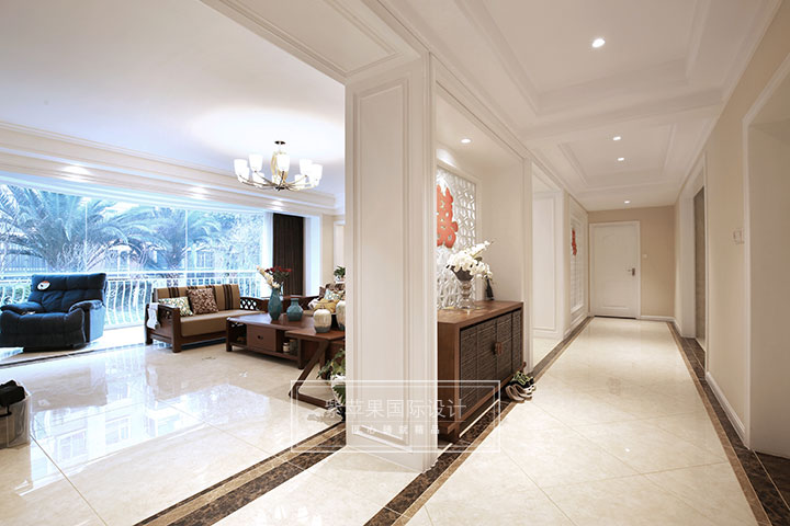 設(shè)計師用理性的眼光,將居室內(nèi)人、物、空間進行完美協(xié)調(diào),一把造型雅致的中式風(fēng)格椅子,一副水墨畫,勾勒出主人的閑情逸致,傳達出溫馨品味的空間內(nèi)涵。