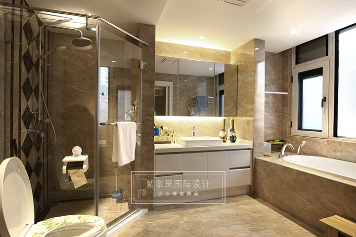 衛(wèi)浴空間最見主人對品質(zhì)生活的需求,每個物品都體現(xiàn)審美與情趣,良好的干濕分區(qū),讓洗浴更加方便,精致,透明的淋浴室,與裝飾鏡相映襯,令整個衛(wèi)浴空間倍顯通透明亮。