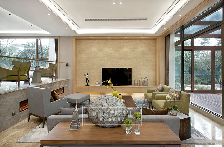 科技木的運用和隱藏窗簾的設(shè)計,配合大面積落地玻璃門窗,形成一幅清新自然的綠色景觀畫。這是將美好自然景觀與日常生活巧妙結(jié)合,借景入畫,增強家居美感。