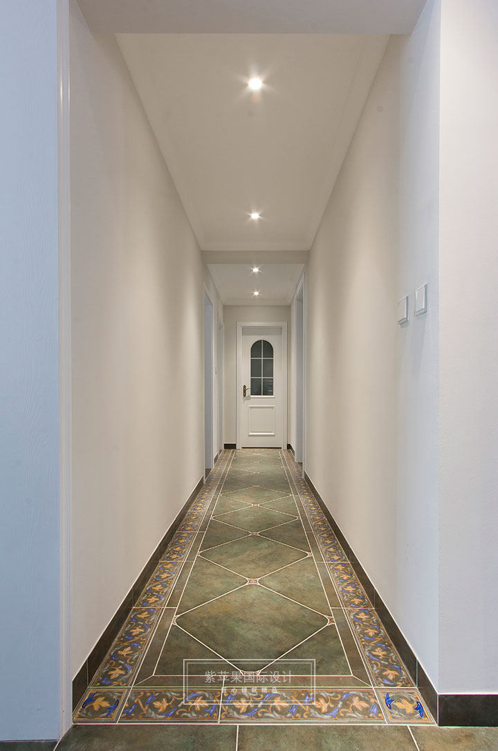 筆直的過道空間里,墨綠色的復(fù)古磚在白色墻壁的映襯下,更顯品質(zhì)和美觀。