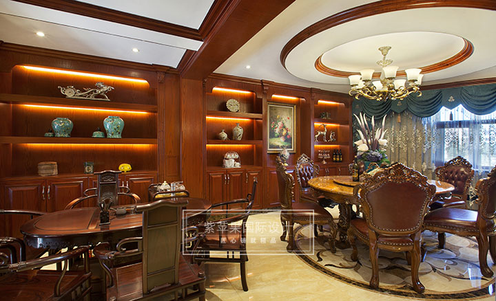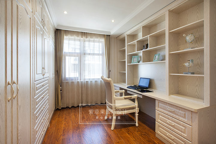 書(shū)房采用實(shí)木地板,走進(jìn)書(shū)房,就能感受到高貴的深色調(diào)與厚重的格調(diào)。