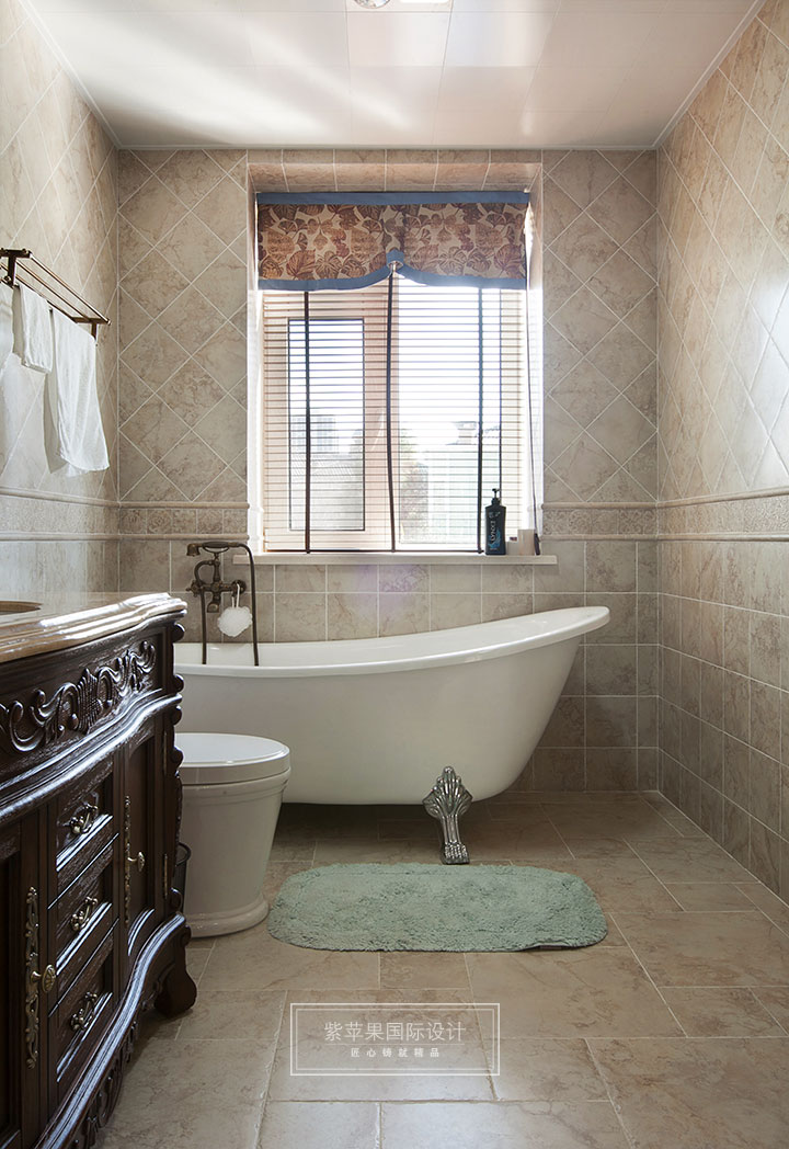 設(shè)計(jì)簡(jiǎn)約的浴缸使用及清潔方便,整個(gè)浴室沒(méi)有過(guò)多的裝飾,簡(jiǎn)約大氣,自在優(yōu)雅。