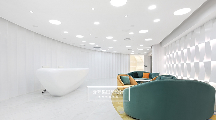 談及上海仁登醫(yī)療門診部的室內(nèi)及軟裝設計靈感,設計師表示:“美容院使用者大多為女性,而女人生來多感性,為感官性動物,整體設計則主要強調(diào)女性的柔美、圓潤、包容,裝飾多以曲線為主。”利用現(xiàn)代極簡風格中圓滑的曲線、溫柔的色彩與質(zhì)感,搭配簡約風的沙發(fā)、燈具、掛畫及大部分留白的墻面與空間,讓女性從中感受到和諧的平衡感。同時,從藝術性、人性化角度減少鏡面物品的出現(xiàn),增添暖光燈帶的隱藏運用,營造一種簡單干凈、純粹自然又不失格調(diào)品味的空間體驗。