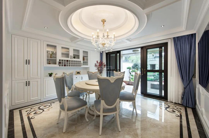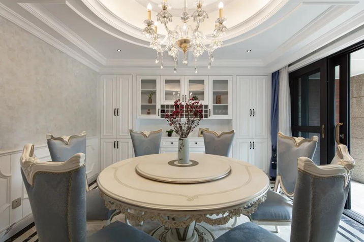 燭臺(tái)樣式的吊燈,對(duì)稱的象牙白餐邊柜仿佛耳邊響起的是小提琴的優(yōu)雅獨(dú)奏。